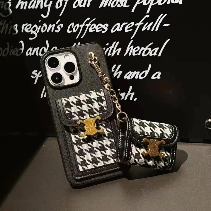 【スマホ イヤホンケースセット】ライチテクスチャ Chanel ブランドロゴ レザースマホケース イヤホン収納 かわいい iphone15ケース ストラップ付き シャネル風 おしゃれ airpods proケース 白黒 安い